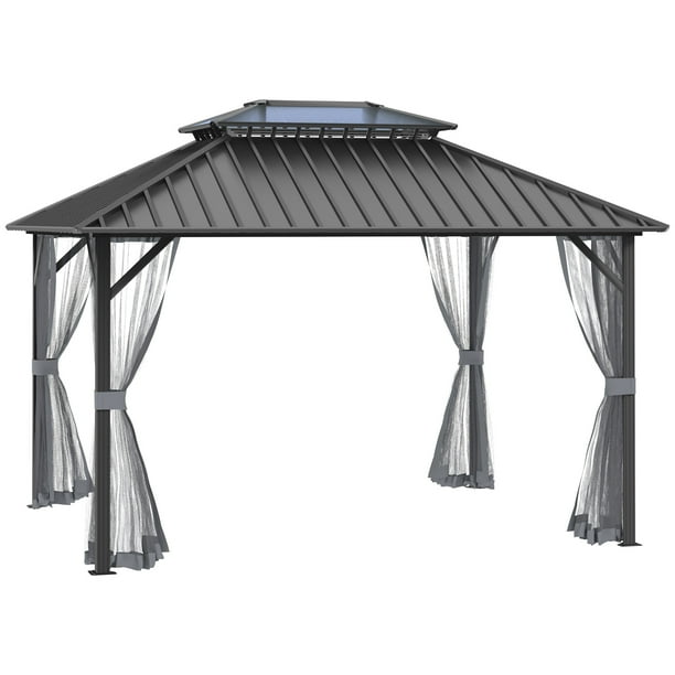 Outsunny 10x12 Hardtop Gazebo With Aluminum Frame Permanent Metal Roof Gazebo Polycarbonate Canopy With Mesh Netting For Garden Patio Backyard Black Walmart Com